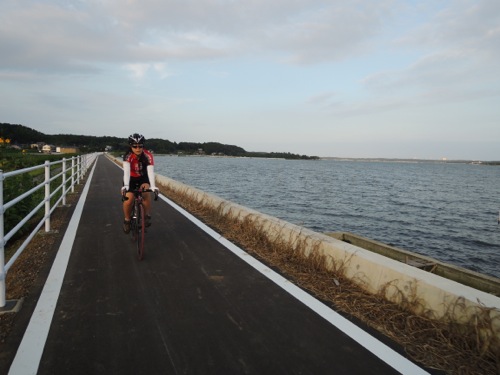 涸沼のサイクリングロードです。