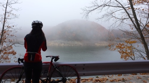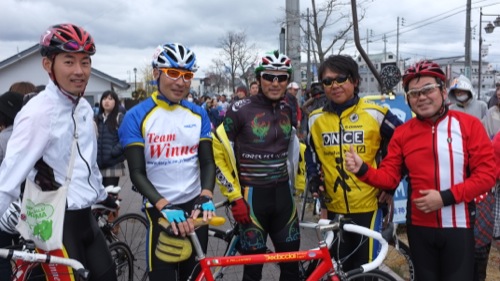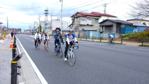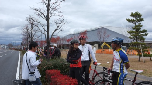 寒いのに夏服姿のサイクリストも・・・