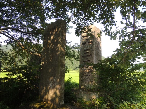 サインに従ってマップA地点まで歩くと日和田集落に着く。右折して旧街道へ入る。街道を少し右手に入ると熊野神社があり、鉄造六面の中に薬師如来像や阿弥陀三尊像がまつられている。