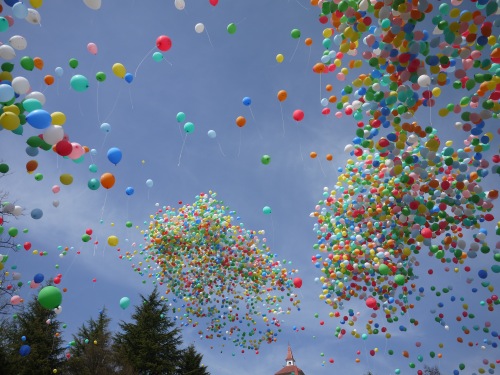 いよいよ、「那須は元気だ」のかけ声で1万個の風船が放たれました。