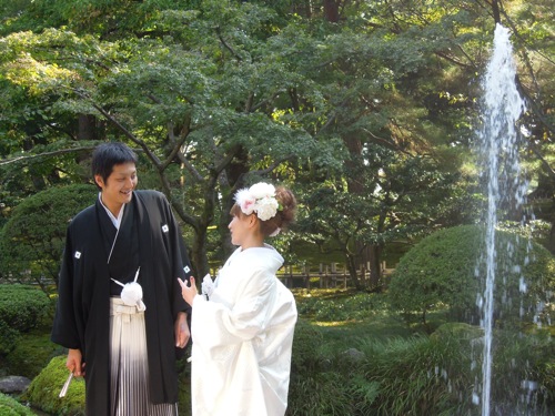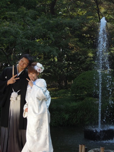婚礼衣装のカップルが写真を撮っていました。(^_^)