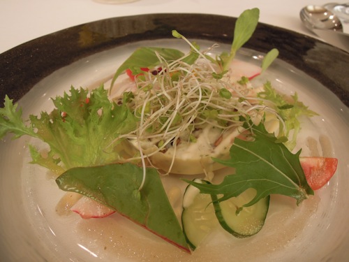 前菜は海老を湯葉で蒔いたテリーヌ
