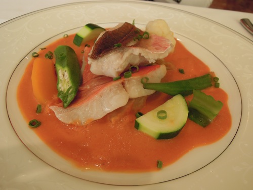 もう一つの主菜のホウボウと金目のワイン蒸しトマトのクリームソースもほんのり甘くて美味しかったですよ。