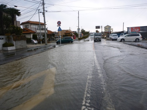 帰り道は渋滞、自転車なので車をすり抜けていきますが、6号線は冠水