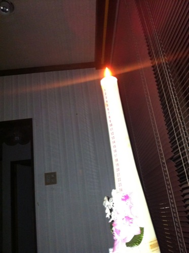 今回停電で活躍したのは自転車のライトとウエディングキャンドル(^_^;