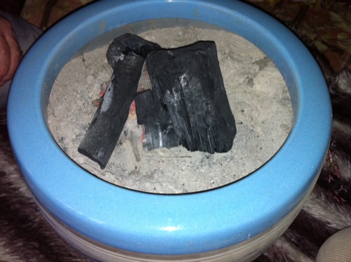 五徳が無かったのですが、私のお茶の道具の風炉から拝借(^_^;