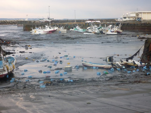小浜港は港の底が見えて船が転がっていましたが、津波がきてまた海水が盛り上がってきました。