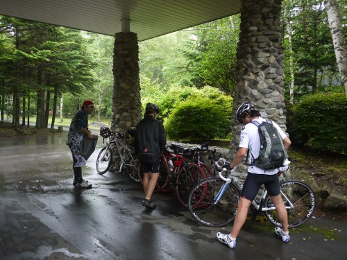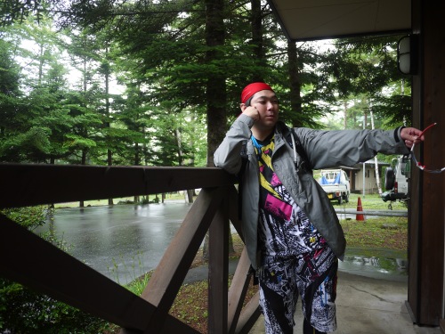 木の下で雨宿りしていたのですが酷くなって来たのでキャンプ場に避難です。