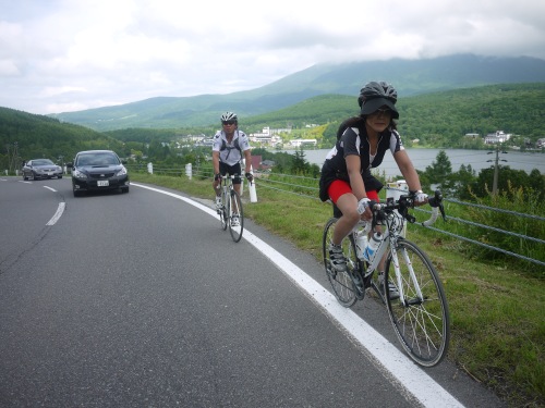蓼科湖に着きました。この辺はゴルフ場がとなりにあったり緑が綺麗ですね。