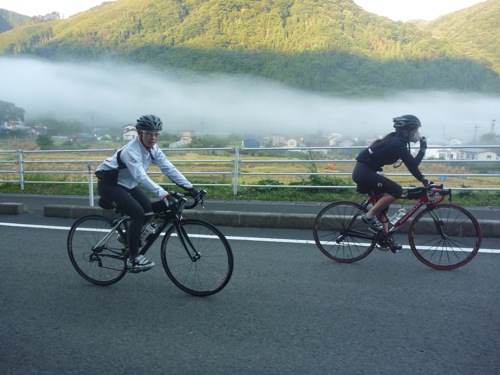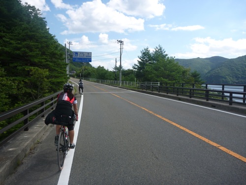 下る途中にキャンピングのサイクリスが居ました(^_^)