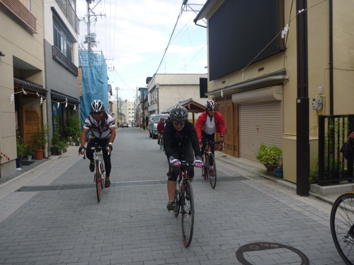 ききょうやさんの先導でサイクリングロードを通って高畠ワイナリーに向かいます。