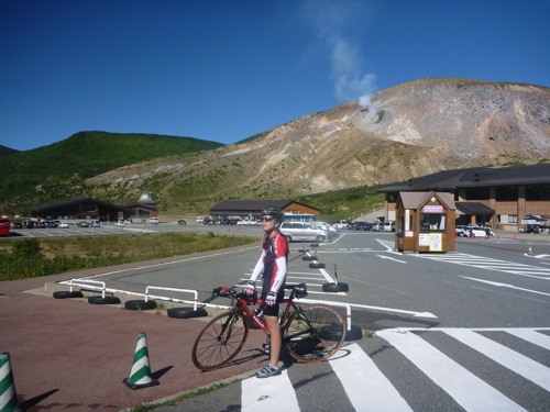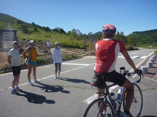 浄土平の駐車場につくとさきほど車から応援してくれた人が居ました。