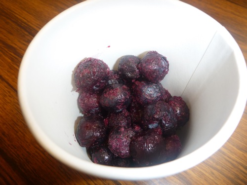 こんにゃくを注文したら、きゅうりのつけものとブルーベリーも出てきました(^_^;