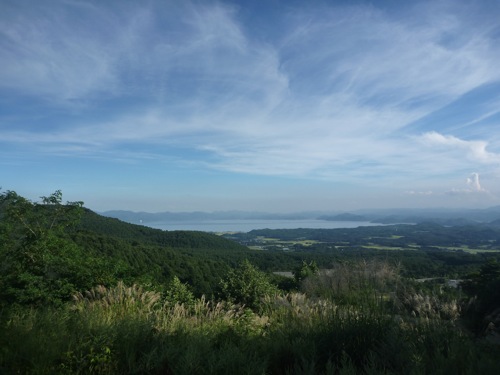 秋元湖が見えてきました。(^_^)
