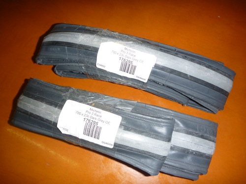 先日タイヤがダメになったのは書きましたが、オークションでPRO3が二本で6800円で売っていました。