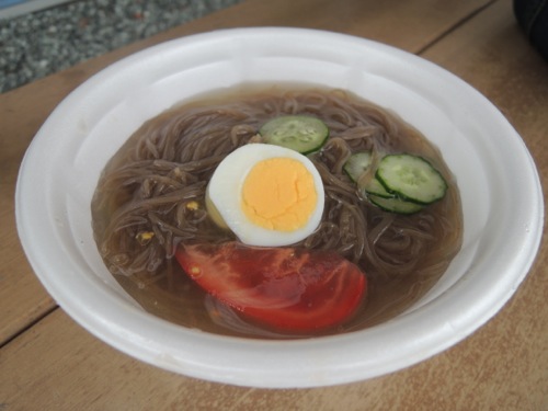 お腹も空いたのでいろいろ食べたかったのですが、トッポッキとか他のものはみんな売り切れて冷麺しかありませんでした。