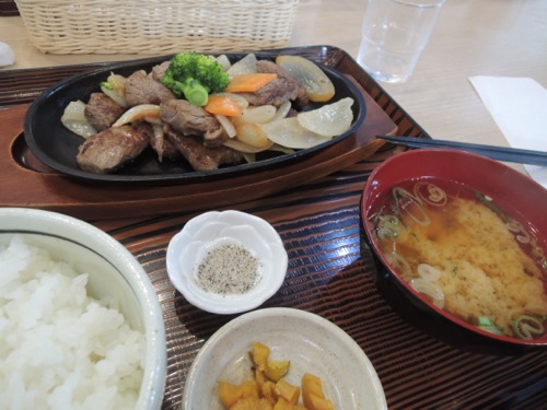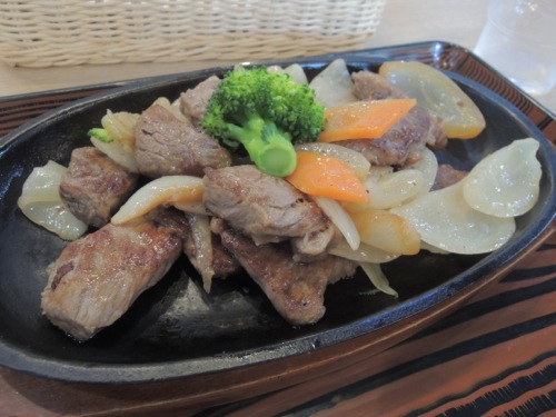 サーロインステーキも美味しそうだったのだけれども100グラムで1,900円。サイコロステーキは約150グラムで2,,200円のでさいころステーキに。