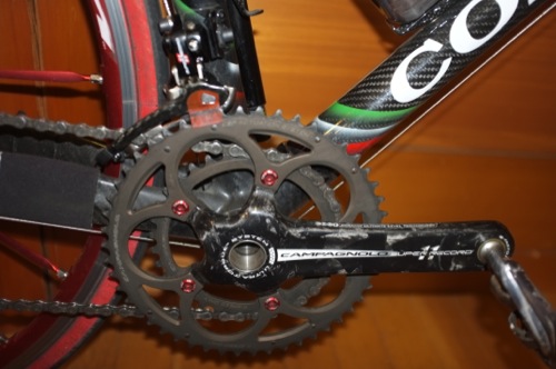 前はアテナでしたが、フレームに合わせてパーツをスーパーレコードに変えました。