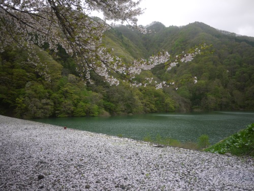 トンネルの切れ間?から湖畔に出れました。
