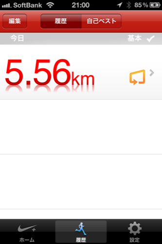折り返す頃インストールが完了したので距離は10キロくらい走ったのですが5.56キロになっています。