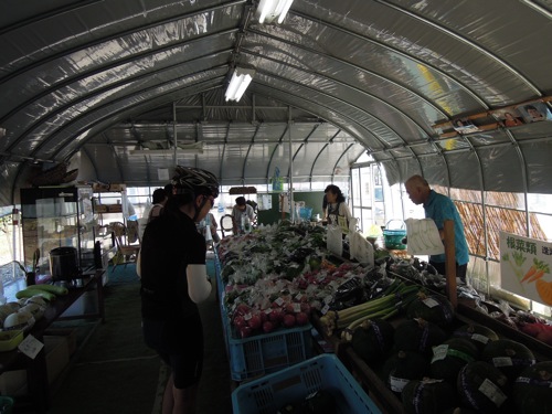 給水するために自販機のところで止まったら野菜の直販所がありました。