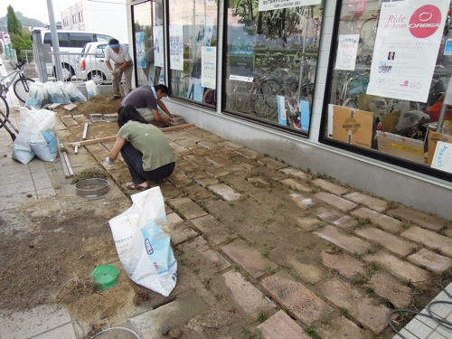 ネモトさんにピンを買いに行ったらブロックを店の前に敷いていました。