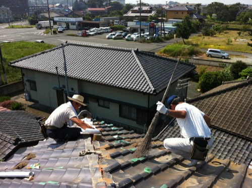 今、工務店さんが瓦の剥がれたのを養生してくれていますが、最近の事情を聞くと瓦やさんは、工務店の仕事をしなくても3年分くらい仕事があるので工務店の仕事はしないそうですね。
