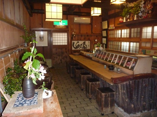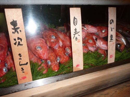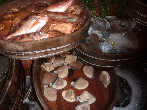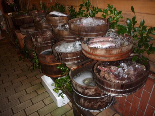 中に入ると桶に魚が並べてありました。