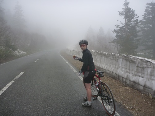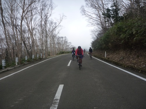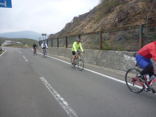 上りは路面が濡れていましたが、下りは乾いていました。