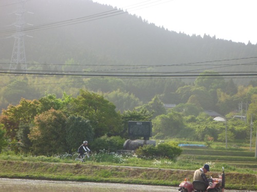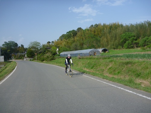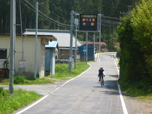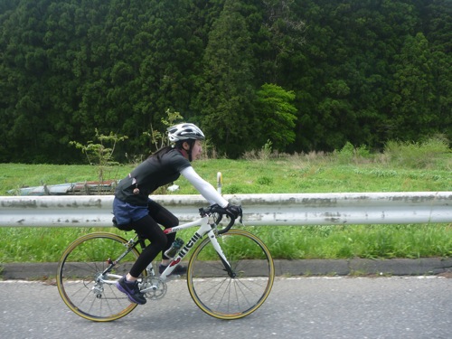 下りで60キロ以上出ているので顔に雨が当たって痛い