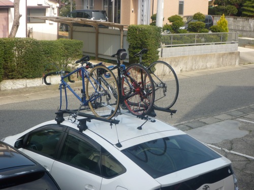 ルーフに三台乗るかどうか心配でしたが、余裕で乗りました。