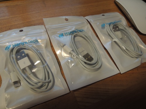 同じ所から新しいOSに対応したケーブルHanyeTech製 iphone5 USBケーブル/Lightning USBケーブル iPhone5 ipad mini 新型ipad ipod iPodnano7対応【品質志向】が198円で出ていたので三本購入しました。