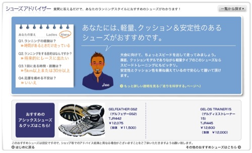 ネットでアシックスのHPを見ていたら自分のスタイルに合わせてアドバイスしてくれるようになっていました。