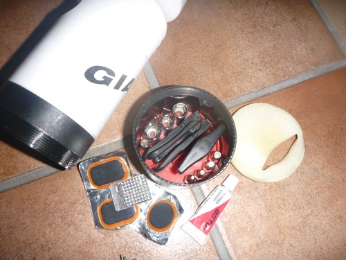 工具とパッチは前に買ったジャイアントのボトルの下に入っています。