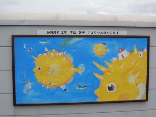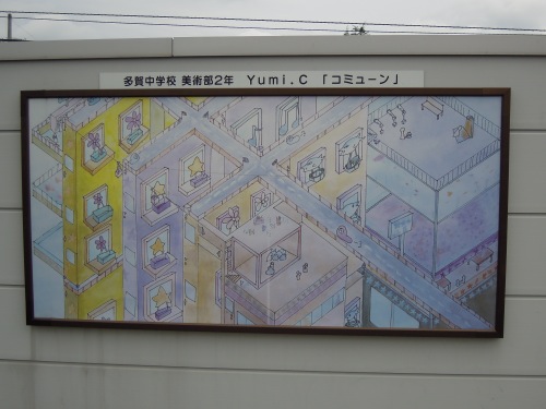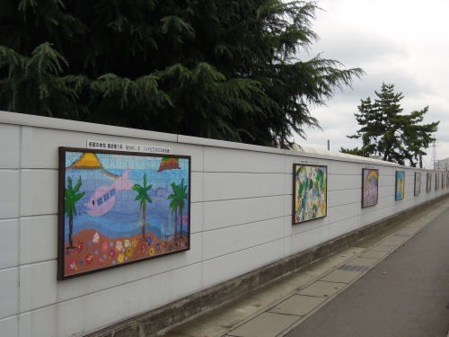道路に子供たちの絵が飾っていました。