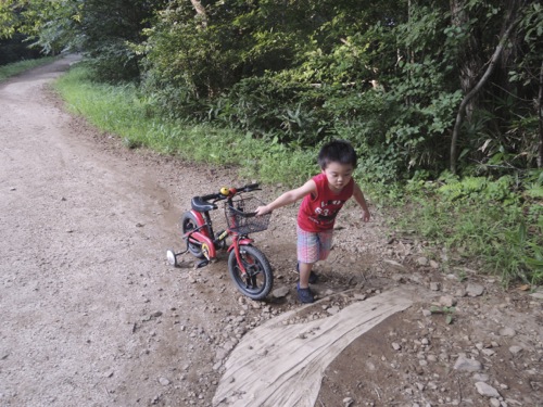 向こうで孫の怜が自転車に乗ると言うので、怜の補助ぐるま付きの自転車とマウンテンバイクを二台積んで出かけました。