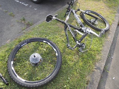 BMCを車から下ろしたら後輪が空気が抜けていました。
