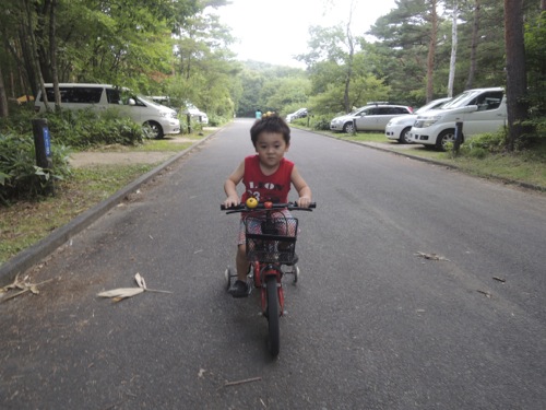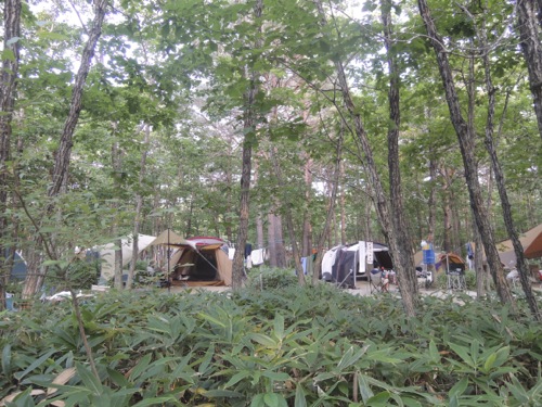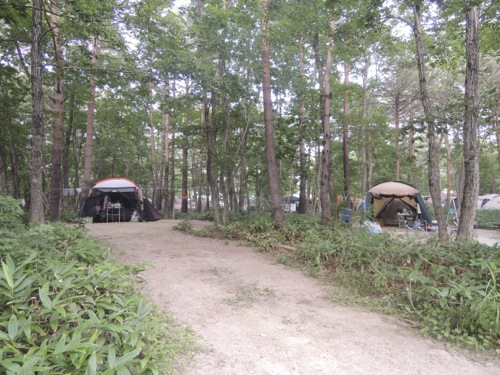 それからオートキャンプ場なのだけれども、道路側に車置いてテントは林の中に自然な感じでテントを張るようになっているので、ほかのキャンプ場のように団地の中にいるような感じではないのでとてもいい感じでした。