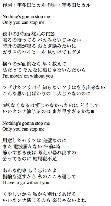 宇多田の「Movin' On Without You」の歌詞にはPHSと時代が変わりますね