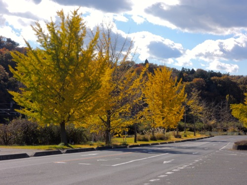 途中、ゴルフ場ヘレナの前に銀杏が散り始めていました。