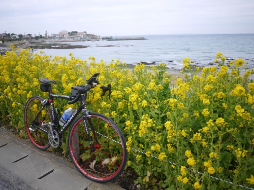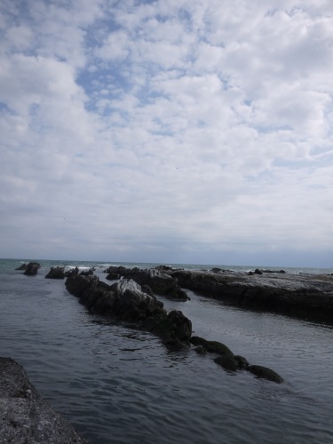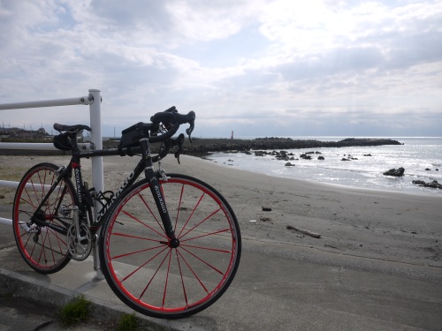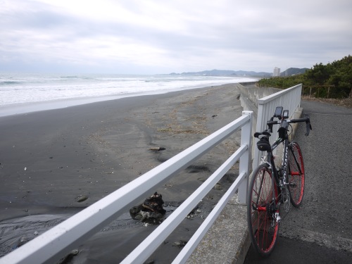 そしたら勿来の海岸近くを自転車を押して歩いていました。