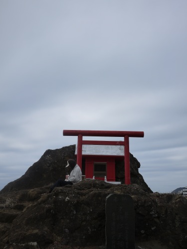 岩の上にあるお宮がいい感じ絵を描いている人が数人居ました。