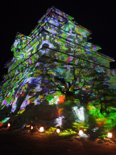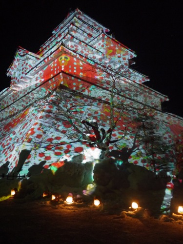 いきなりカラフルな鶴ヶ城とご対面