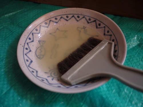 はがすのは大根をすって汁を取り出し剥がし液にしました。