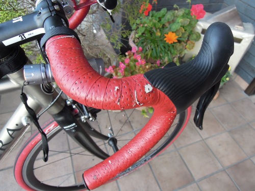 フィジークのバーテープは気に入っていたのですが、水に弱いのかスカイラインを走って花火を見ている時に雨に当たったら剥がれてしまいました。 (/_;)