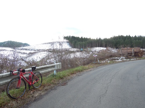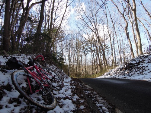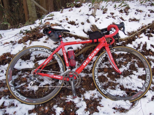 写真を撮るのに自転車を停めて雪の上をあるったらスピードプレイのビンデイングに雪が詰まってしまいました。 (^_^;A
