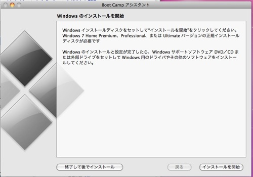 今度は上手くいったけど、XPにブートキャンプがインストール出来ない