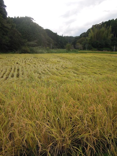 稲が台風で倒れていました。