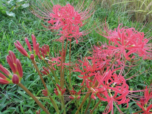 いつもならお寺も曼珠沙華が満開なのですが今年はちょっと遅い感じです。