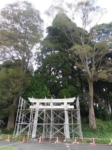 大塚神社は鳥居が地震でやられたのか修理の足場がかかっていました。